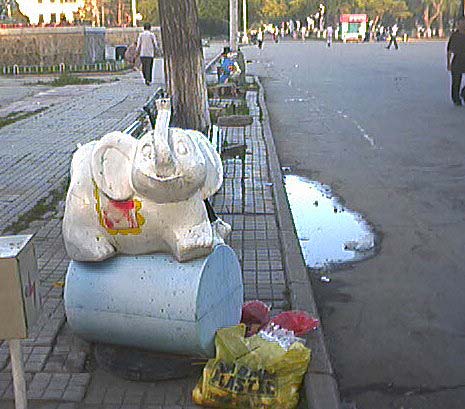 「ごみをどうしてぼくの前に捨てる! なぜ中にいれない! パオーッ!」 [Hey, I AM a trash box, can you recognize me??]
