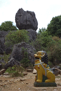 大きな岩に負けてません。[Stand bravely in front of the big rock.]